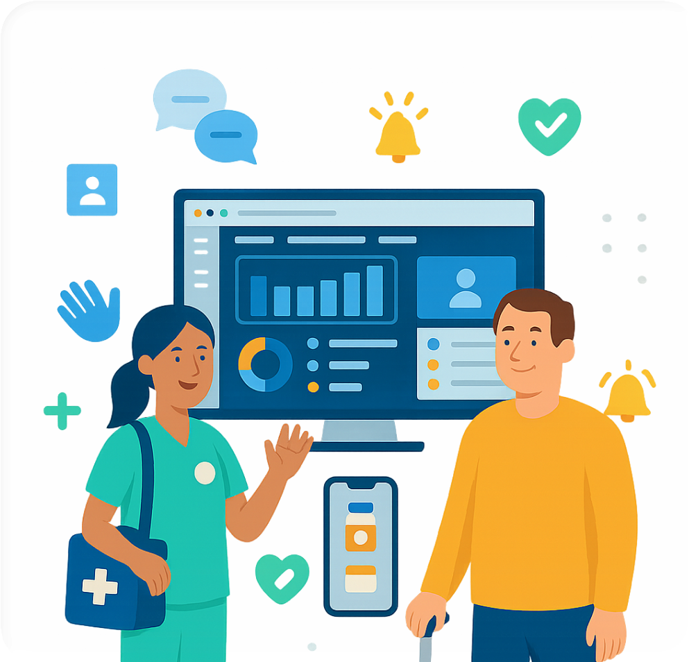Conpago works alongside your existing systems to connect clients, families, and frontline teams, so everyone sees the right information at the right time.