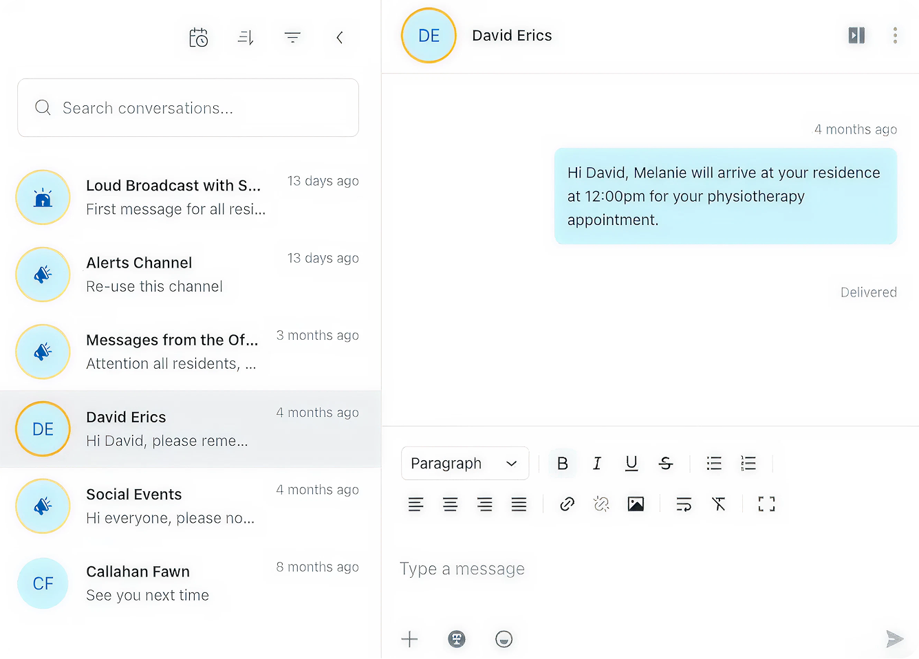 Conpago gives you one consistent place to send and track updates, so clients, families and staff know what’s happening.